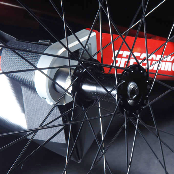 - protège-chaîne en aluminium sur les deux roues arrière,