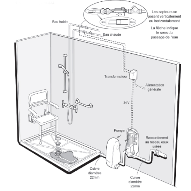- comprenant : 1 pompe, 1 transformateur, 2 capteurs, 1 interrupteur,