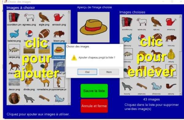 Le pictogramme permet la gestion des listes et des images avec lesquelles on joue : on peut créer de nouvelles listes, les modifier, etc.
