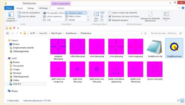 - Le nom de l'image choisie comme "curseur" est enregistré dans un fichier de texte simple "GuideSouris. Cfg",