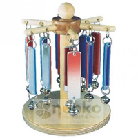 - produit des effets lumineux et sonores grâce aux clochettes suspendues aux lamelles,